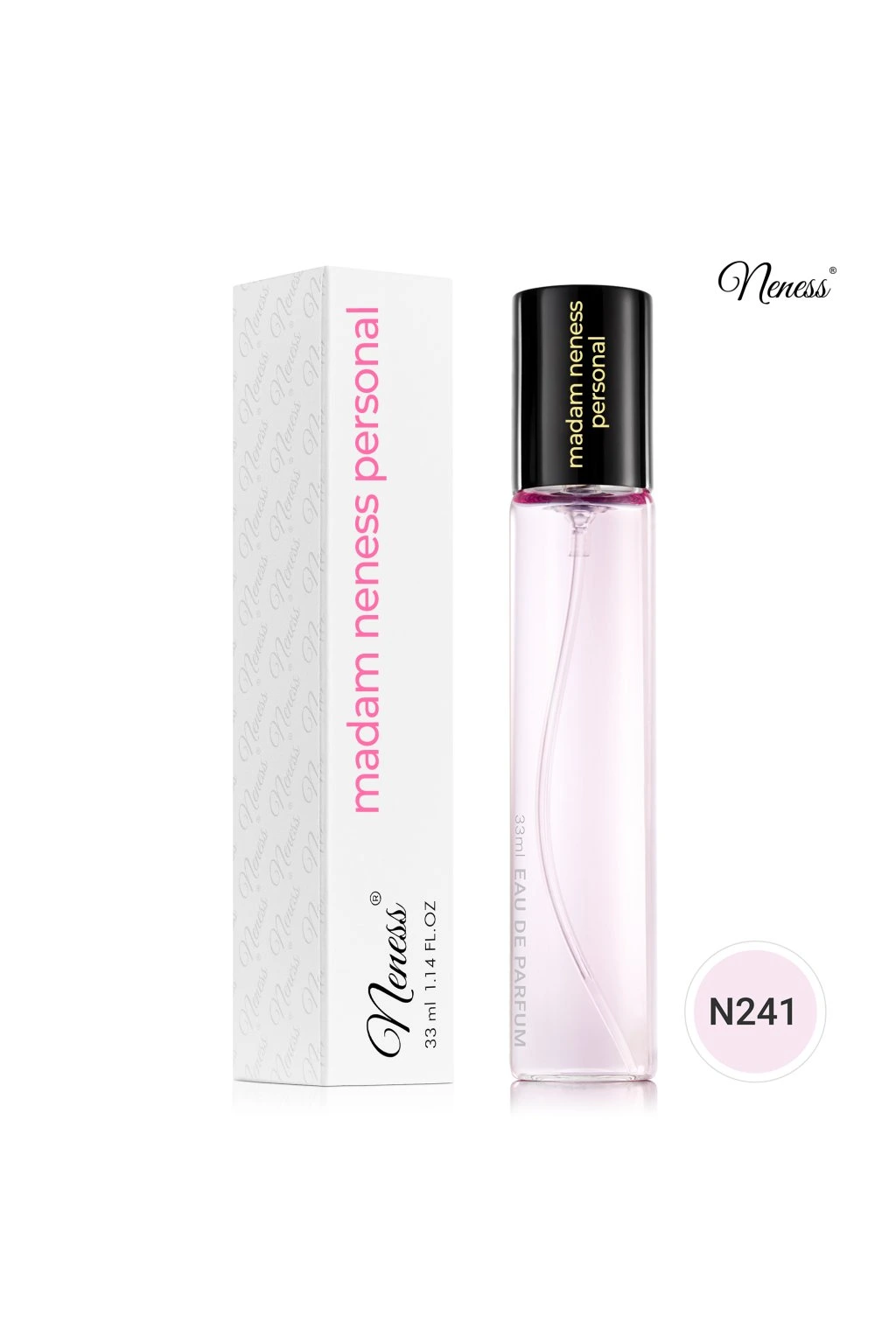Orientální-květinová vůně uzavřená v klasickém flakónu 33 ml. Která žena nerada zdůrazňuje svoji krásu a někdy i sex-appeal? Správný parfém je dokonalým doplňkem každého stylu a znemožní komukoli lhostejné procházení! Madam Neness Personal 33 ml je návrh vytvořený pro dámy, které preferují sladké, květinové a orientální tóny. V kompozici jsou v popředí růže a pižmo.